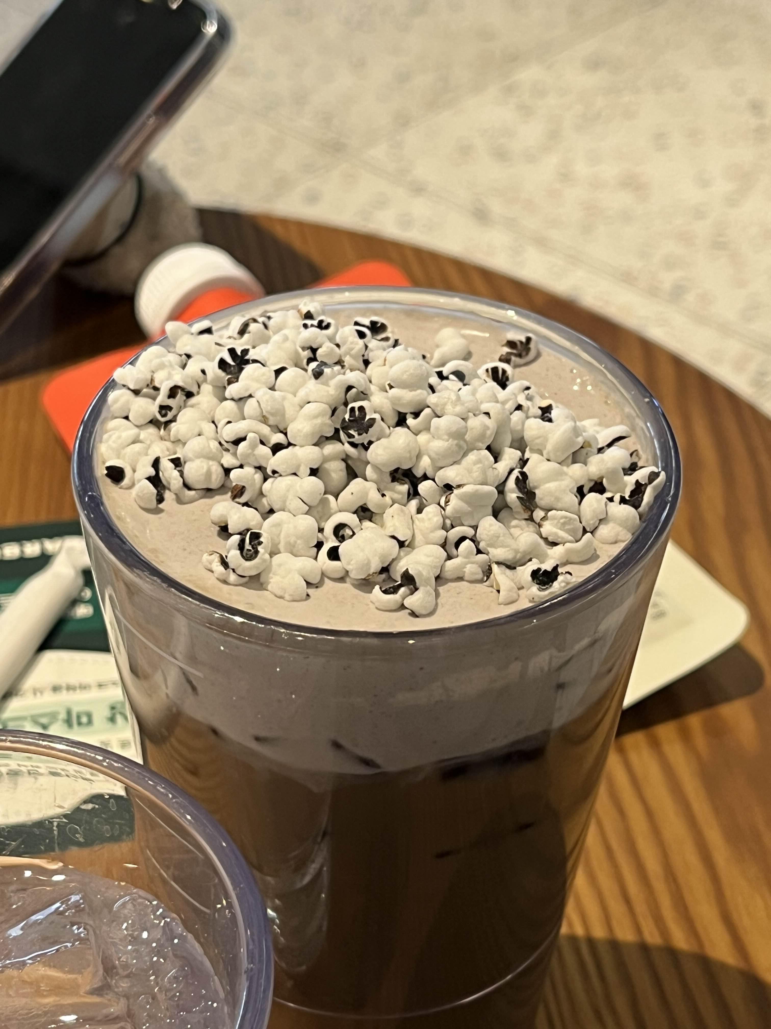 스벅 신메뉴. 뭐였더라 기억이 안나는데 이번에 나온 신메뉴다. 엄청 달지도 않고 엄청 고소하지도 않은 애매한 맛. 미모사도 먹어봤는데 걔도 애매한 맛. 강황라떼는 괜찮다던데 걔도 먹어봐야겠다.