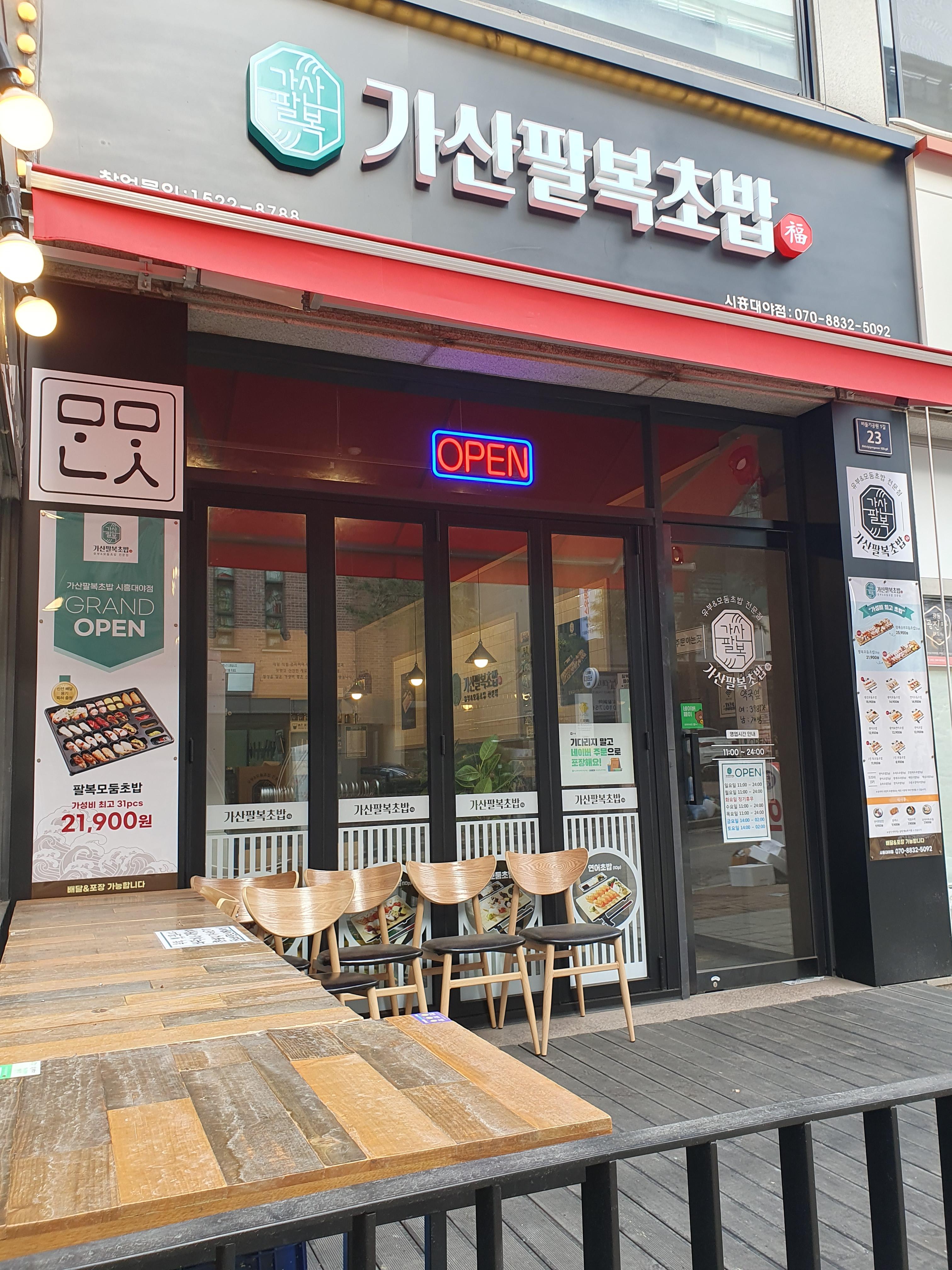 시흥 대야동 양문교회 쪽 앞에 위치한 가산팔복초밥이다. 이제는 양문교회 앞이 아니라 푸르지오 앞이라고 부르려나? 하여튼 여기는 사람이 저녁에 꽤 많은걸 봐왔는데, 옆에 맛만? 술집이랑 같이 운영을 하는 것 같다. 그 술집에 사람이 항상 많은건 알고 있었는데, 여기랑 같이 하는건 처음 알았다.