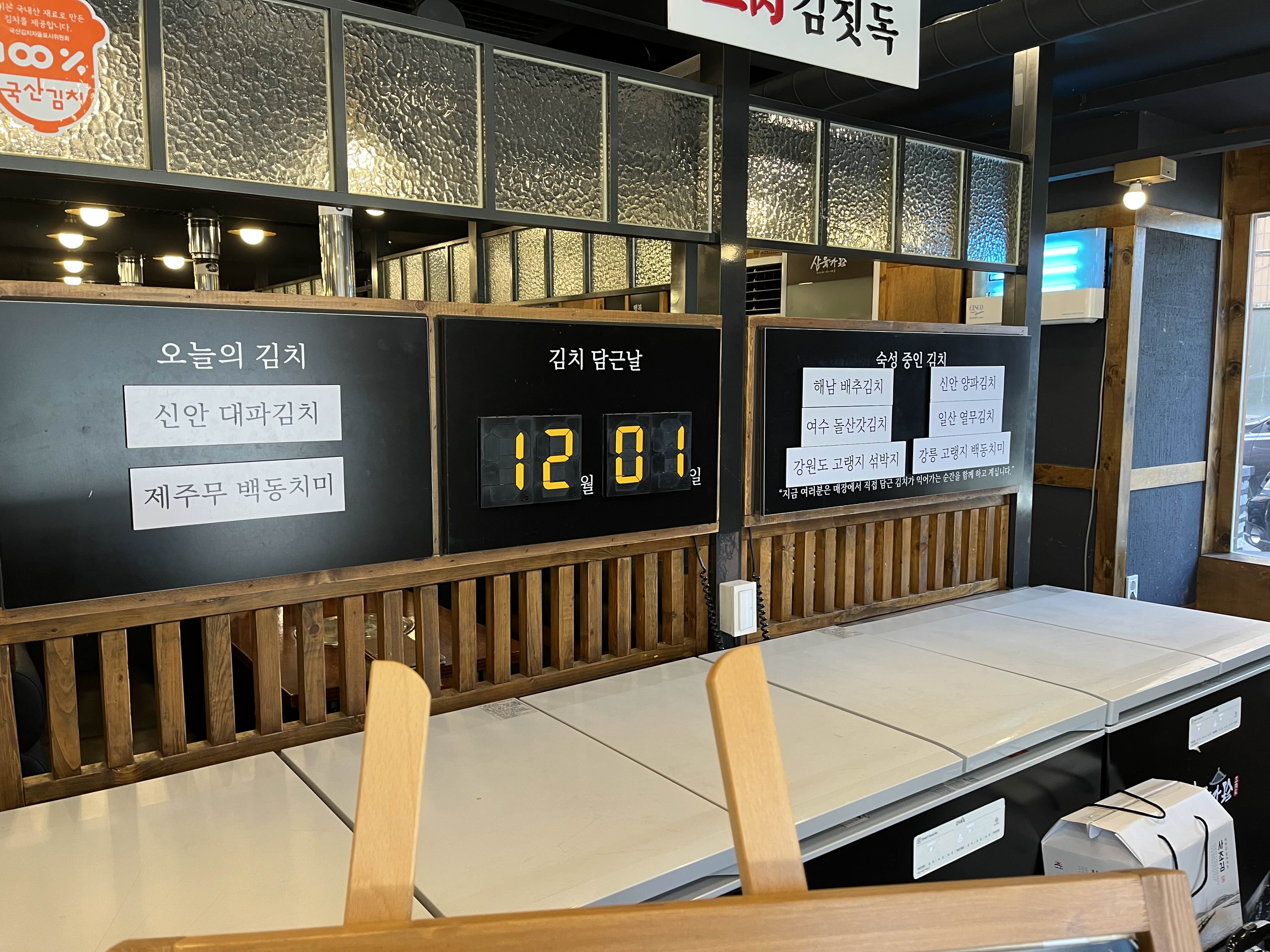아, 이 날 동치미도 나왔는데, 동치미도 나올 때가 있고 그렇지 않을 때도 있다. 포스팅 맨 위에 보면 무슨 김치가 나오는지 알 수 있게끔 매장 앞에 써두니깐 그걸 참고해서 고기를 먹을지 말지 결정하면 될 것 같다.