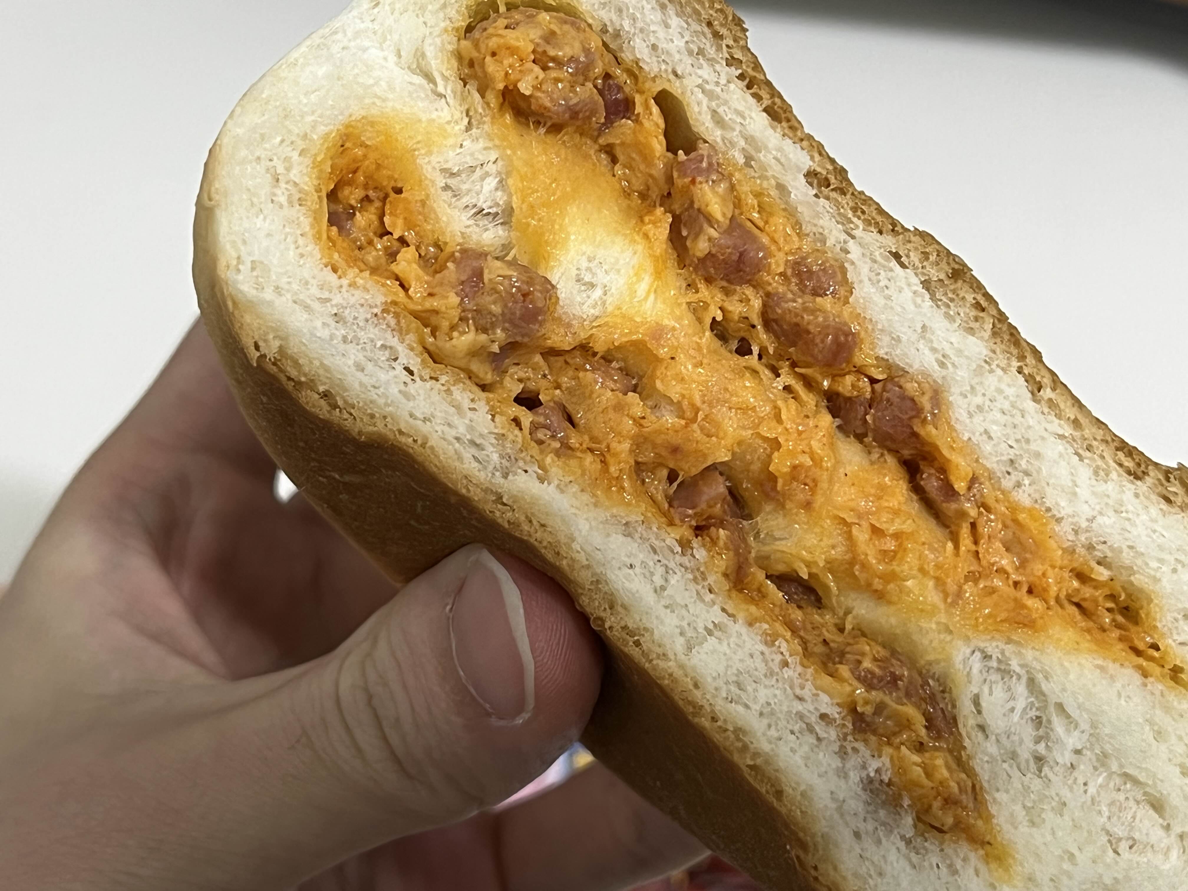 안에 내용물은 햄과 치즈 불닭소스가 버무려진 소스들로 채워져있다. 음 맛이 막 엄청 이상하진 않지만 차라리 초코가 들어있는 빵이 나은 것 같다.