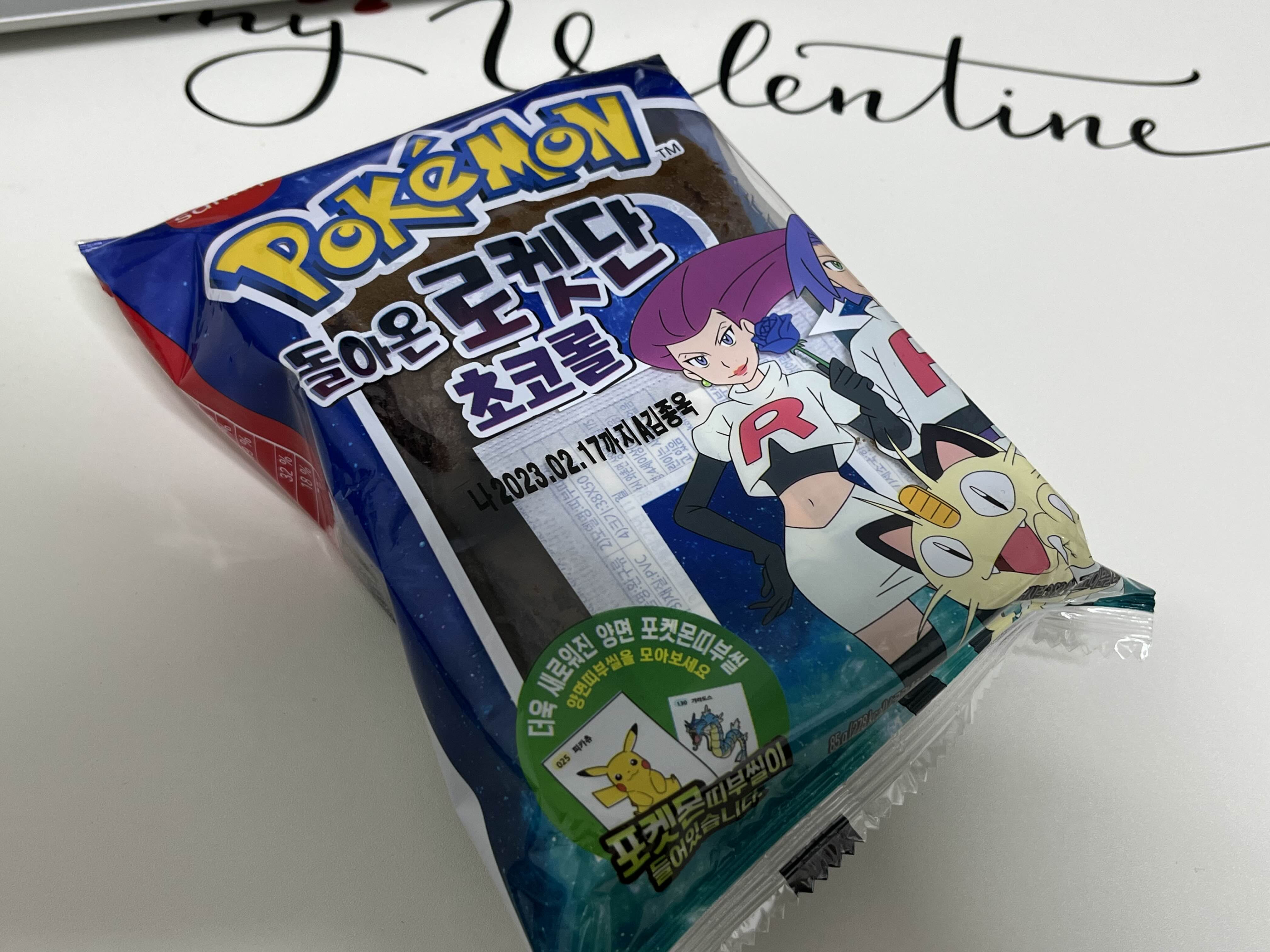 요즘 마트에서 자주 보이는 포켓몬 빵이다. 심지어 종류별로 다양하게 들어와서 너무 좋다. 이번에는 내가 가장 좋아하는 포켓몬 빵 중 하나인 로켓단 초코롤이다.