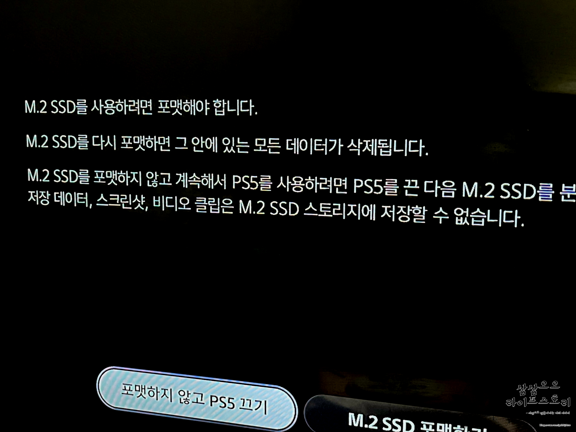 그리고 플스 전원을 켜주면 알아서 ssd를 인식해서 포맷 여부를 물어본다.