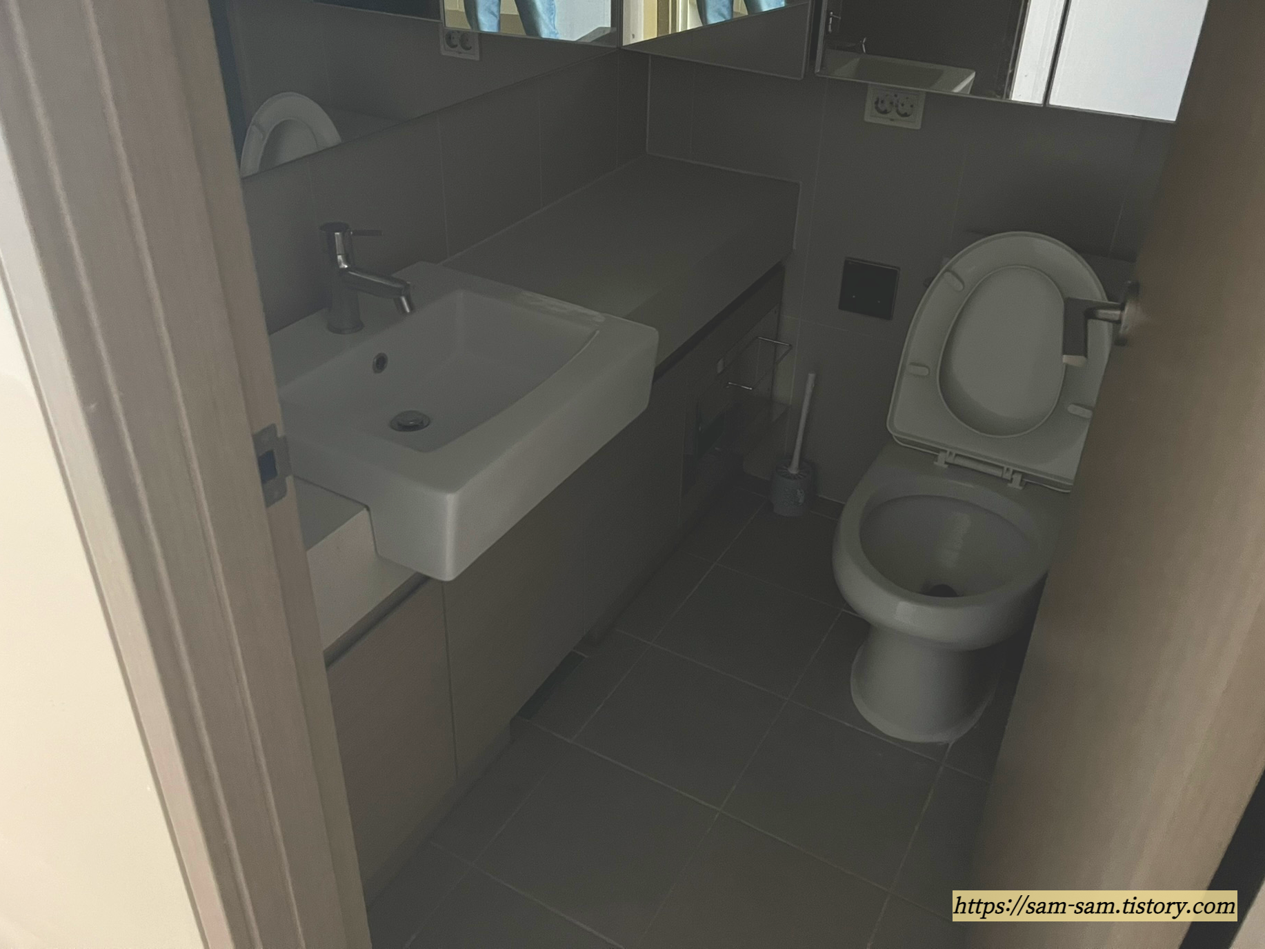 또 하나의 장점은 넓은 화장실이다. 화장실에도 수납공간이 많고, 세면대 밑으로도 수납공간이 있다. 3성급 호텔에 가면 흔히 볼 수 있는 형태의 화장실이라 보면 되겠다. 또한, 샤워부스가 별도로 있다.