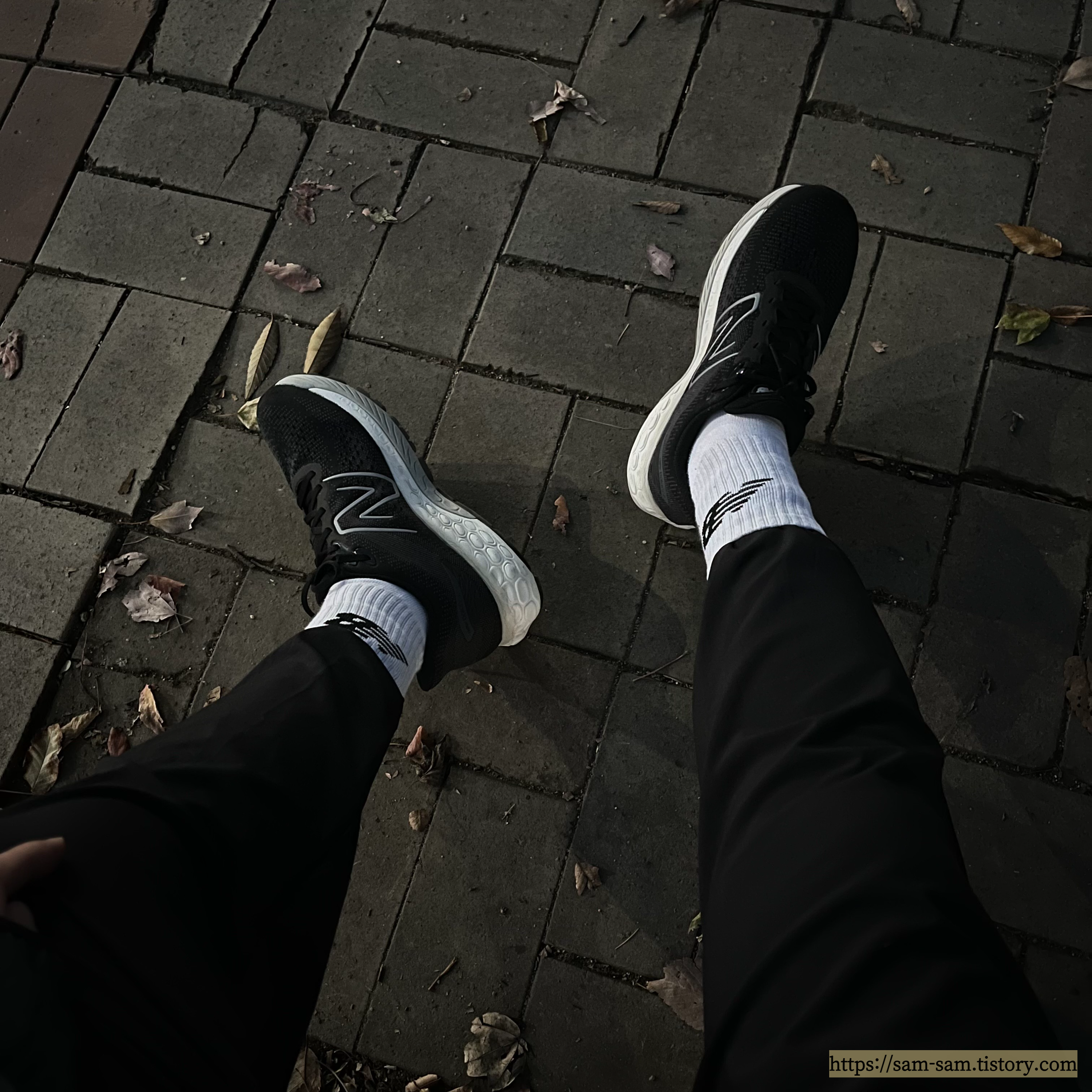 이건 처음 러닝을 뛰러 나간 날 찍은 사진이다. 뉴발란스 신발에 뉴발란스 양말을 맞춰서 신어보고 싶었다. 지금은 나이키랑도 같이 돌아가며 신고 있다. 왜냐면 뉴발란스 양말이 좀 작은걸 사버렸다. 어쨌건 신발에서 중요한건 발볼 넓이인 것 같다. 발길이도 물론 중요하겠지만 발볼이 맞지 않으면 오래 신을 수 가 없다. 꾸준히 러닝을 지속한다면 다음 러닝화는 발 측정을 해보고 구매하고 싶다. 플릿러너에서. 근데 요즘은 예약이 너무 빡세니 패스.