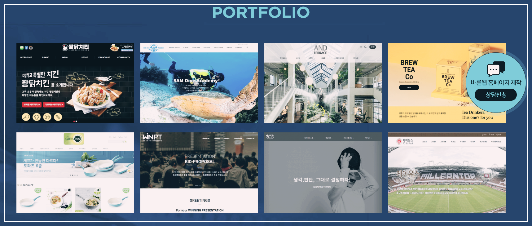 그 외에도 바른웹에서 직접 디자인하고 만들어진 사이트들이 많다. 홈페이지는 내 가게, 기업, 사업장을 보여주는 온라인 매장과도 같다. 즉, 간판이며 이미지가 된다. 그래서 홈페이지를 제작에 있어 꼼꼼히 따져보아야 한다.